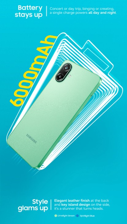 The display will have a smart adaptive screen with 800 nits of brightness and a 120Hz refresh rate. A 6,000mAh battery is confirmed for the Galaxy F70e 5G. The phone features a leather-finish back panel along with a side-mounted key island, and will be available in Limelight Green and Spotlight Blue colour options.