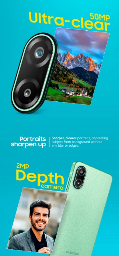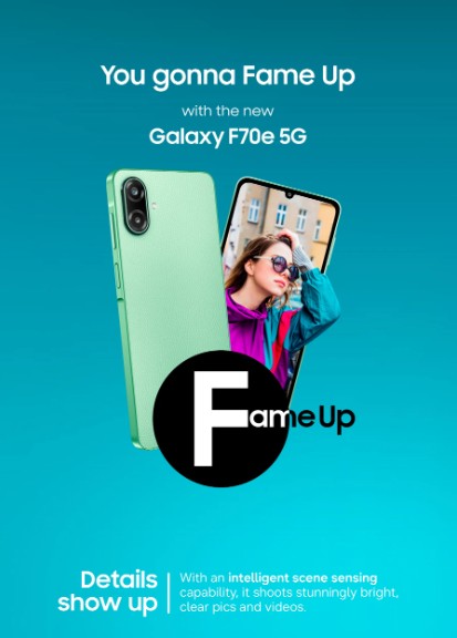 According to the Flipkart microsite, the Galaxy F70e 5G will feature a 50MP Ultra-Clear main rear camera with Intelligent Scene Sensing, paired with a 2MP depth sensor. On the front, the smartphone will come with an 8MP camera supported by a face correction tool.
