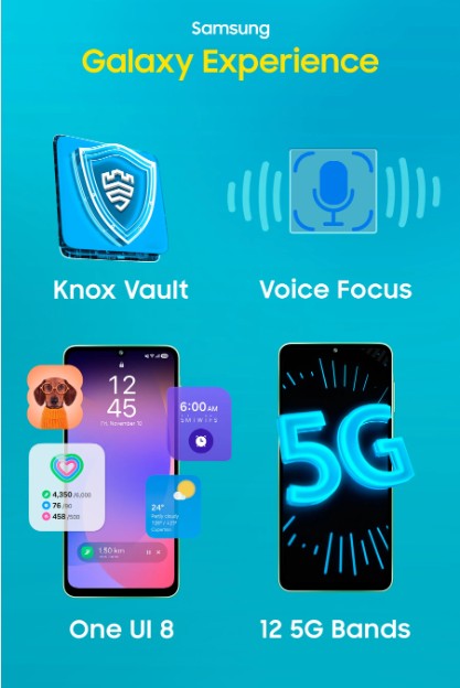 Other features mentioned are Knox Vault, Voice Focus, One UI 8, and support for 12 5G bands. Now, as we had mentioned several times in our reports earlier, and as the specs revealed via the microsite confirm, this is indeed a rebranded version of the Galaxy A07 5G.
