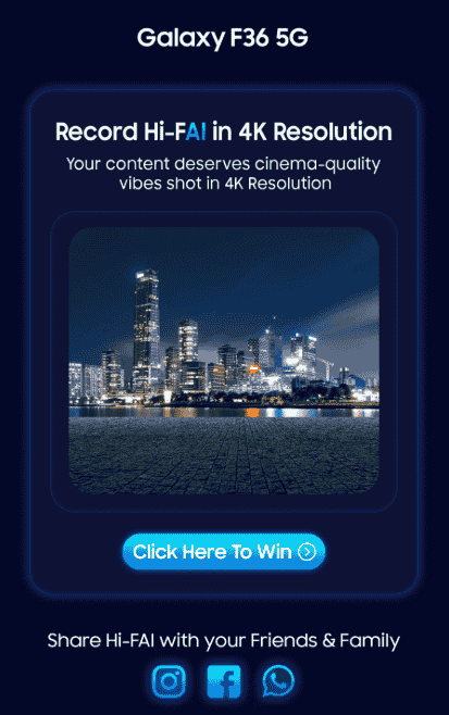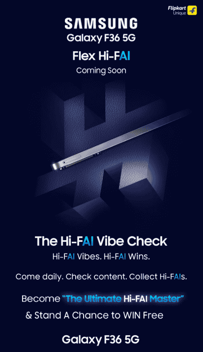 Samsung’s next Galaxy F36 5G smartphone has been teased with the tagline – ‘The Ultimate Hi-FAI Master’ and just like all other Galaxy F-series smartphone models, this device will also be hitting the Indian market soon as a Flipkart Unique product. In addition to pointing out its soon launch in India with the tagline – ‘Coming Soon’, the upcoming device is revealed to offer AI capabilities and support 4K video recording. Also to add, a glimpse of the smartphone on the Flipkart landing page suggests a similar flat form factor design and pill-shaped rear camera module for the Galaxy F36 5G device as well, and it might probably be offering a Blue color shade featuring a leather rear panel.