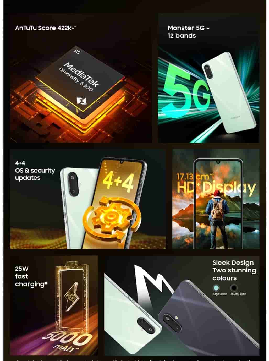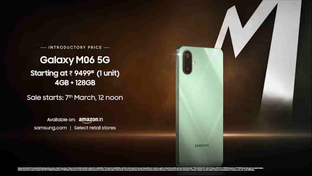Galaxy M06 5G arrives at a starting price of Rs 9,499 (4GB/128GB). It includes a Rs 500 bank discount on selected banks. It is available in Sage green and Blazing black colors The sale for this device will start from 7 March at 12PM via Amazon, Samsung.com, and selected retail stores.