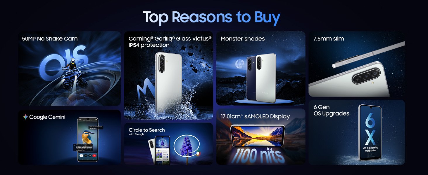 Under the hood, it is powered by the Exynos 1330 octa-core processor, clocked at up to 2.4GHz and paired with an ARM Mali-G68 MP2 GPU. The smartphone runs on Android 15 with Samsung’s One UI 7 on top, and it comes with support for 6 OS upgrades and 6 years of security updates.