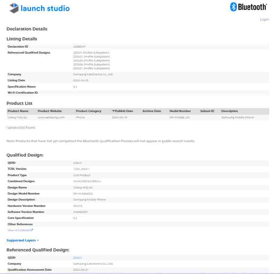 Galaxy M35 5G has been spotted on Bluetooth SIG and GCF certification websites with model number SM-M356B/DS.