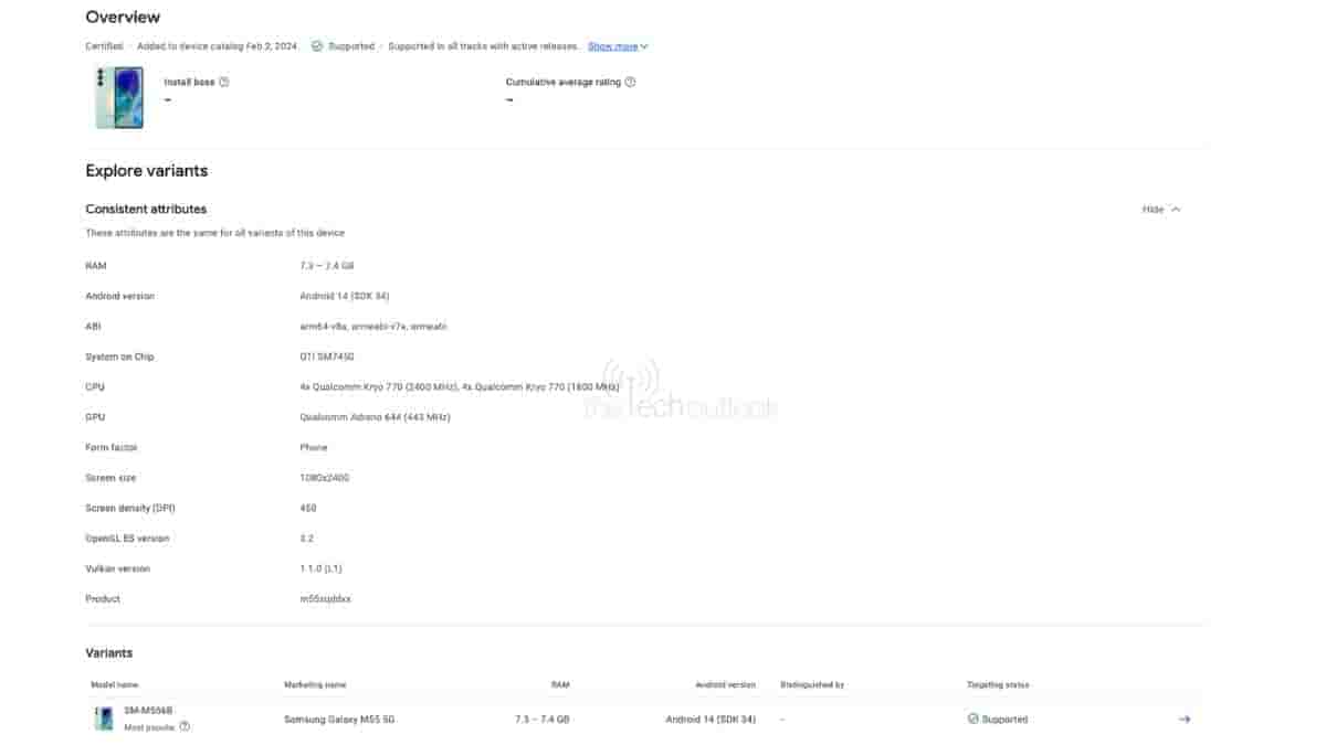 Today our team at The Tech Outlook has spotted Galaxy M55 5G with model number SM-M556B.