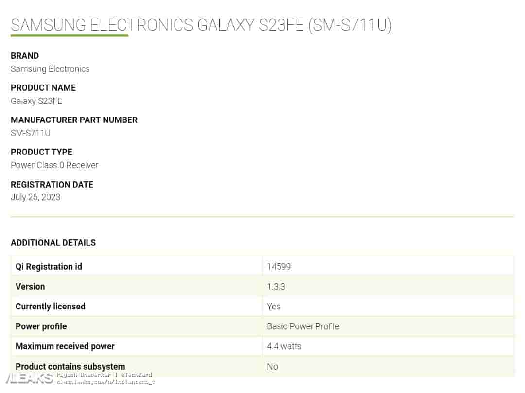 Samsung Galaxy S23 FE live image revealed, spotted on Wireless Power Consortium website