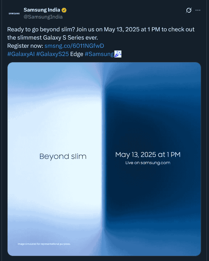 Samsung has teased its upcoming Galaxy S25 Edge with the tagline – ‘Beyond Slim’ and its launch is scheduled to take place on the 13th of May 2025 itself as expected, both globally as well as in the Indian market at 09:00 AM KST/01:00 PM IST. It will also be live streamed on Samsung.com as well, and the pre-booking for interested Indian customers is now live on the brand’s official website.