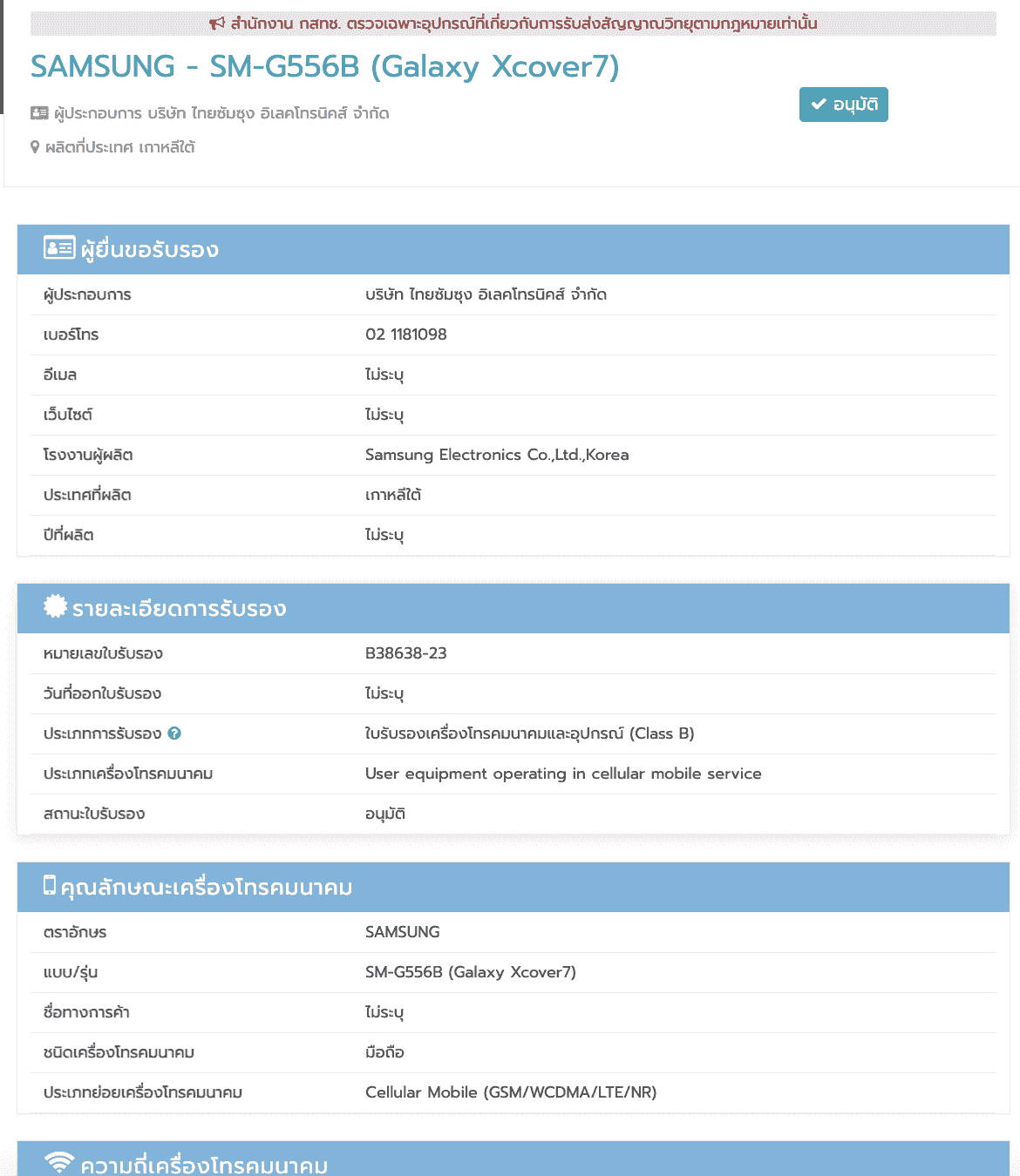 Recently Galaxy XCover 7 has been spotted on various certification websites- BIS, Bluetooth SIG, and Geekbench. The device has now been spotted on the NBTC database with model number SM-G556B.
