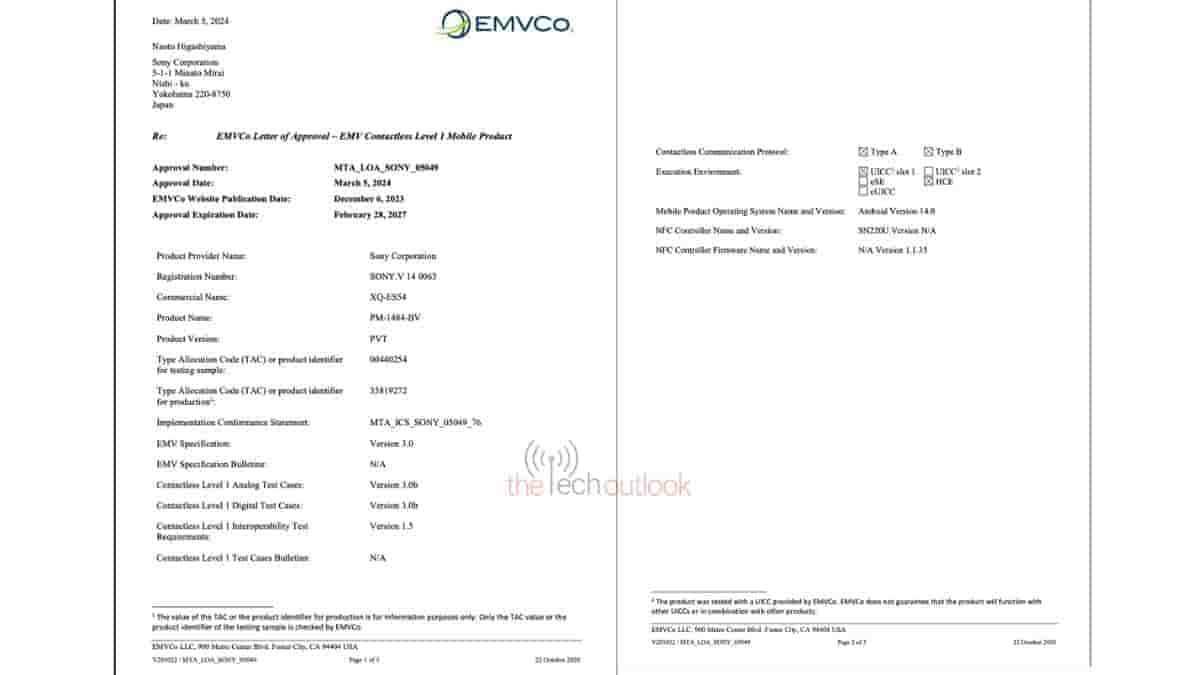 Sony Xperia phone spotted on EMVCO database; could be Xperia 1 VI
