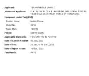Tecno Camon 20 Premier appeared in the database of the FCC website with model number CK9n.