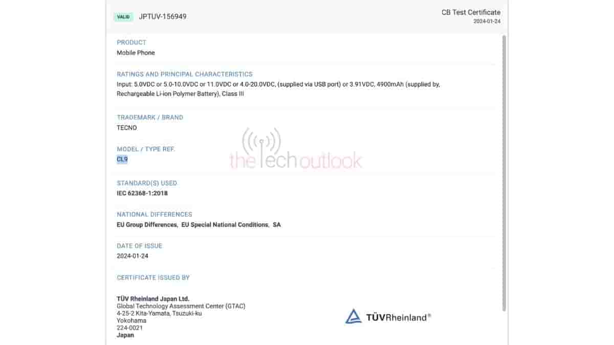Today our team at The Tech Outlook spotted the upcoming smartphone on the TUV certification website with model number CL9.