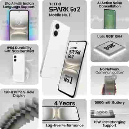 Powering the phone is a 5000mAh battery with 10W charging support via a USB Type-C port. Connectivity options include dual 4G VoLTE, Wi-Fi 802.11 a/b/g/n/ac, Bluetooth, GPS, IR blaster, and OTG support. The Spark Go 2 is also equipped with TECNO’s AI voice assistant “Bia”, which supports Indian regional languages, enhancing accessibility. Additionally, it offers No Network Communication Mode, enabling peer-to-peer messaging even without mobile signal—a standout feature for remote or emergency use.