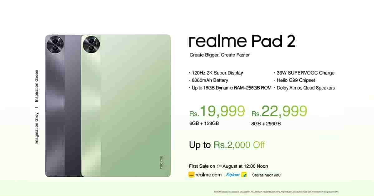 The first sale of this tablet will be on August 1, 2023, at 12:00 noon. Up to Rs 2,000 off will be available during the sale.