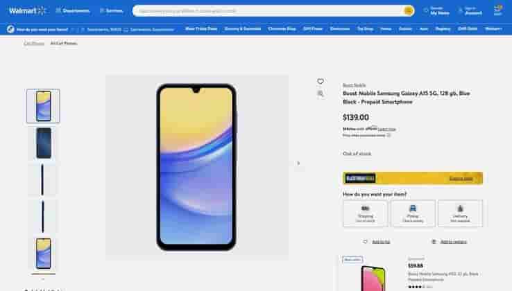 Upcoming Galaxy A15 5G listed on US shopping giant, Walmart; Key specs and pricing details revealed
