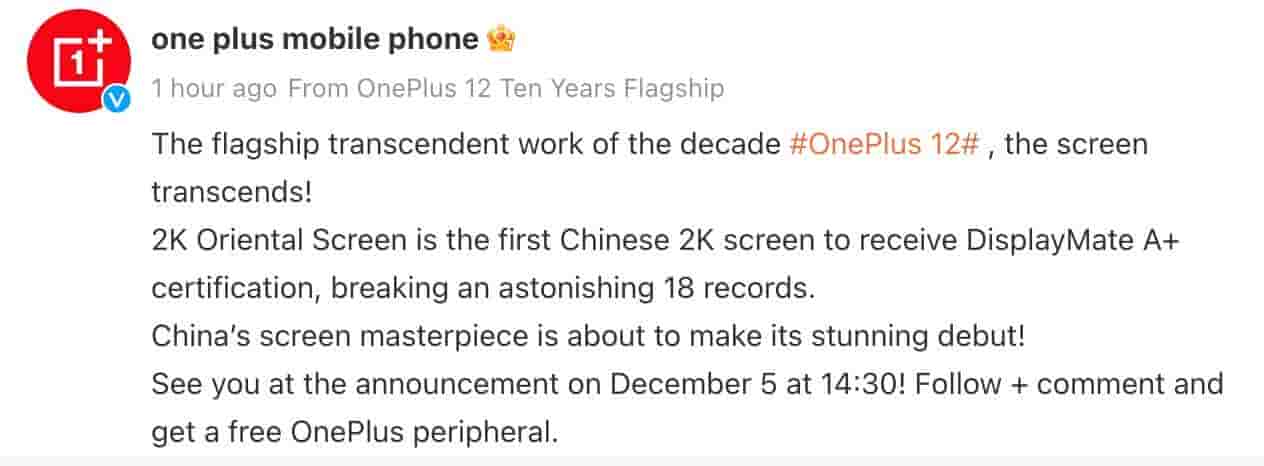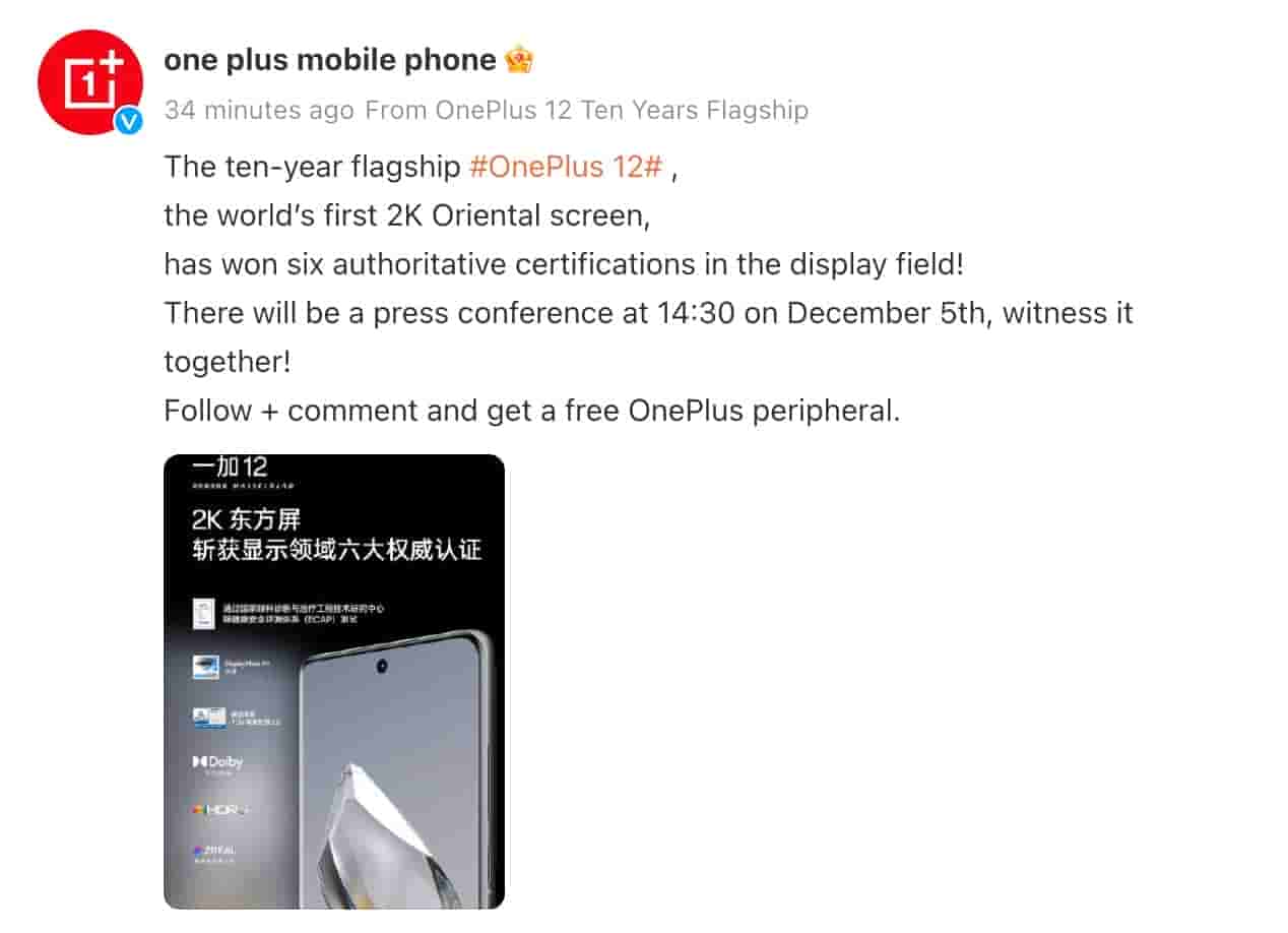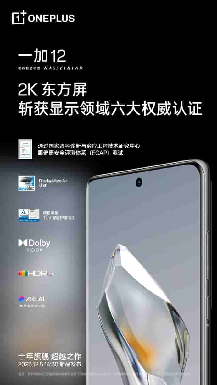OnePlus has again now officially teased the display specifications of the upcoming flagship 12 device, further confirming a lot of its previously revealed and expected display features. The certifications the display has attained have also been shared