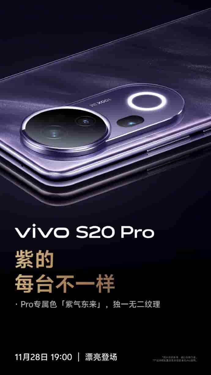 . Vivo S20 Pro will arrive in Purple (Purple Air Comes From East), gold (Phoenix Feather gold), and grey (Pine Smoke Ink) color options whereas Vivo S20 will come in gold (Phoenix Feather gold), White (Jade Dew White) and grey (Pine Smoke Ink) colors. As earlier revealed Vivo S20 Pro will be equipped with a triple rear camera setup and the vanilla model will be equipped with a dual camera setup on the rear side.