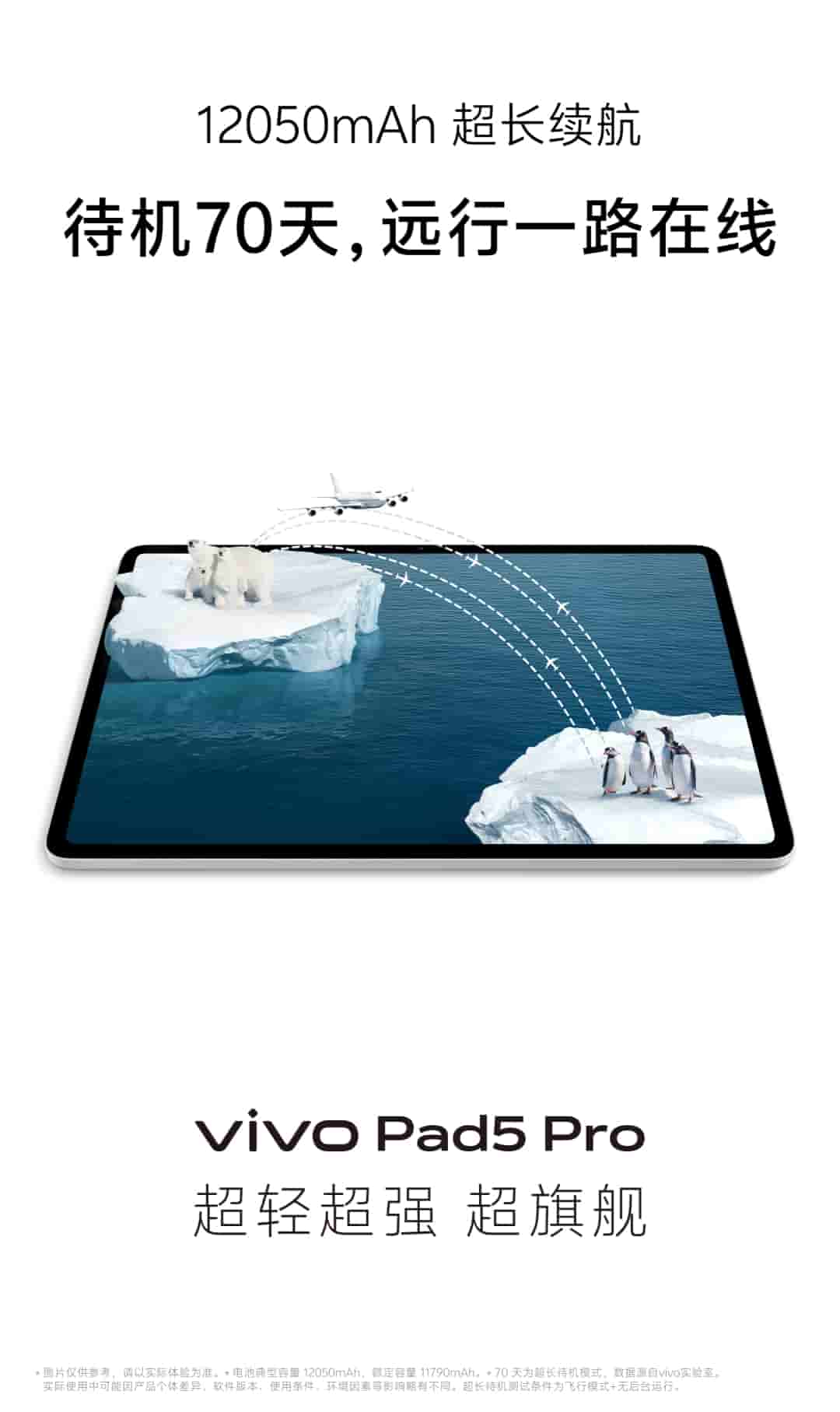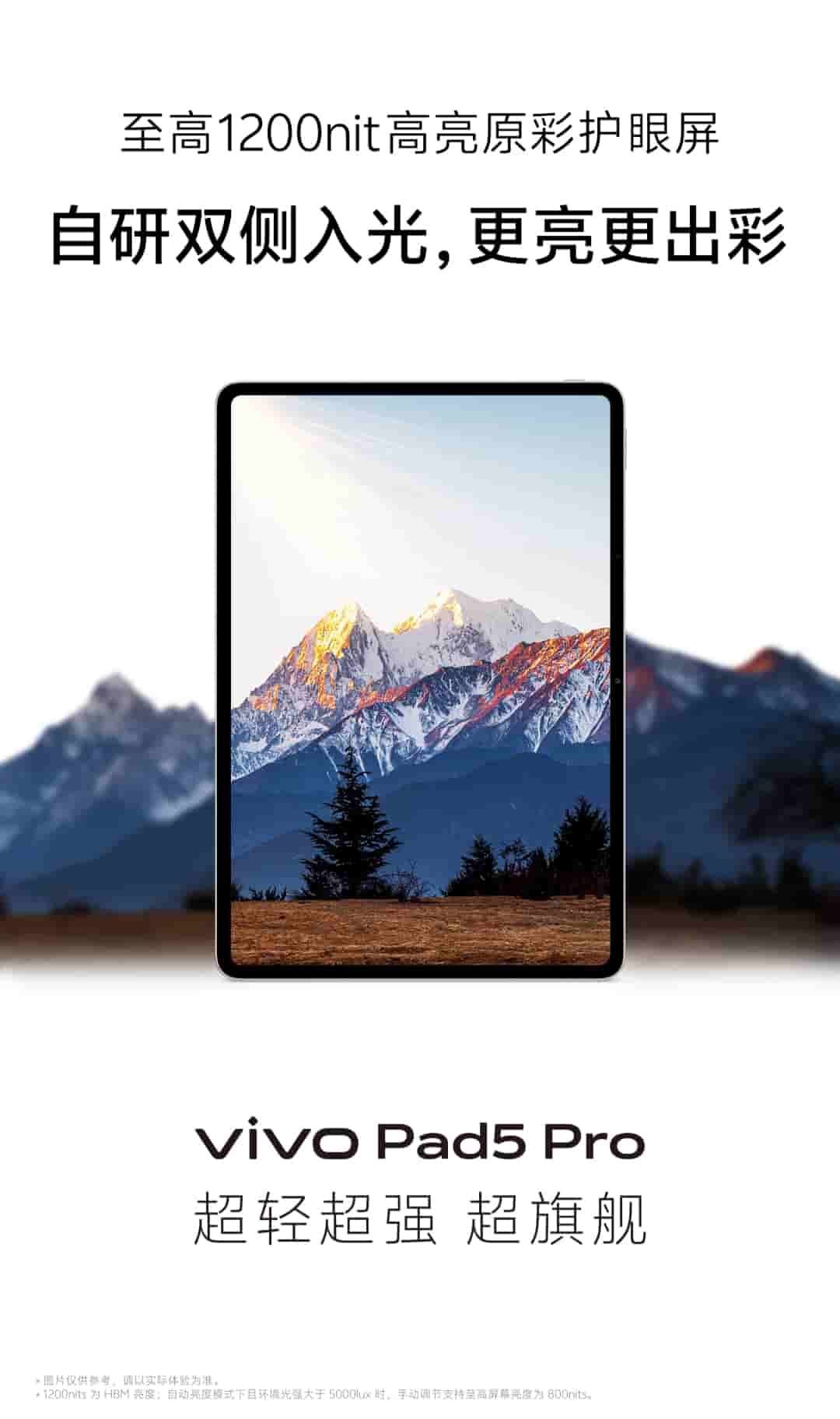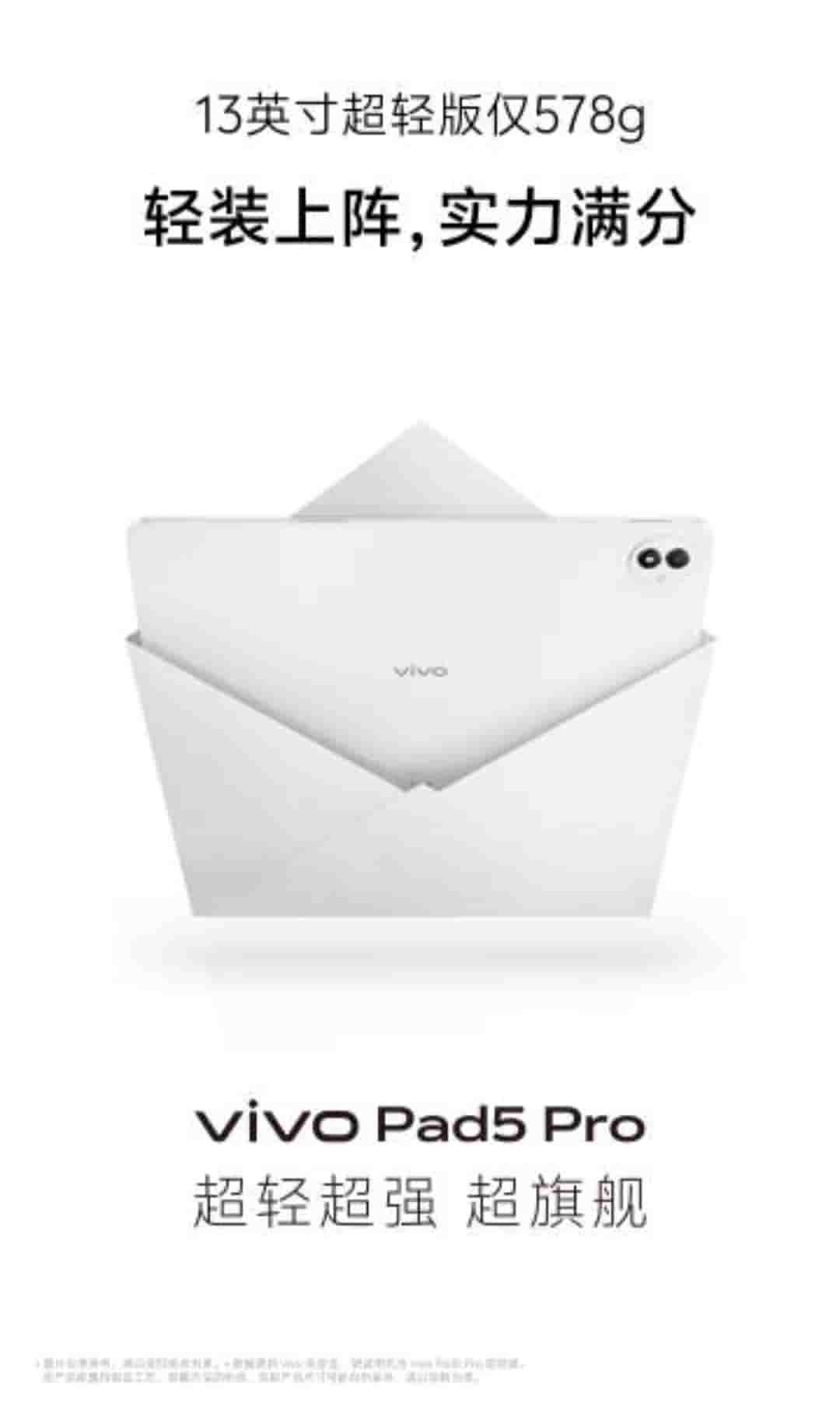 Vivo Pad 5 Pro 13 inch ultra light version weighs 578g. The tablet offers up to 1200 nit high brightness. It will be powered by Blue Crystal x Dimensity 9400 SoC and run on OriginOS 5 HD. It is backed by 12050mAh battery and offers 70 days of ultra long standby. It comes with PC-level WPS+ AI document productivity.