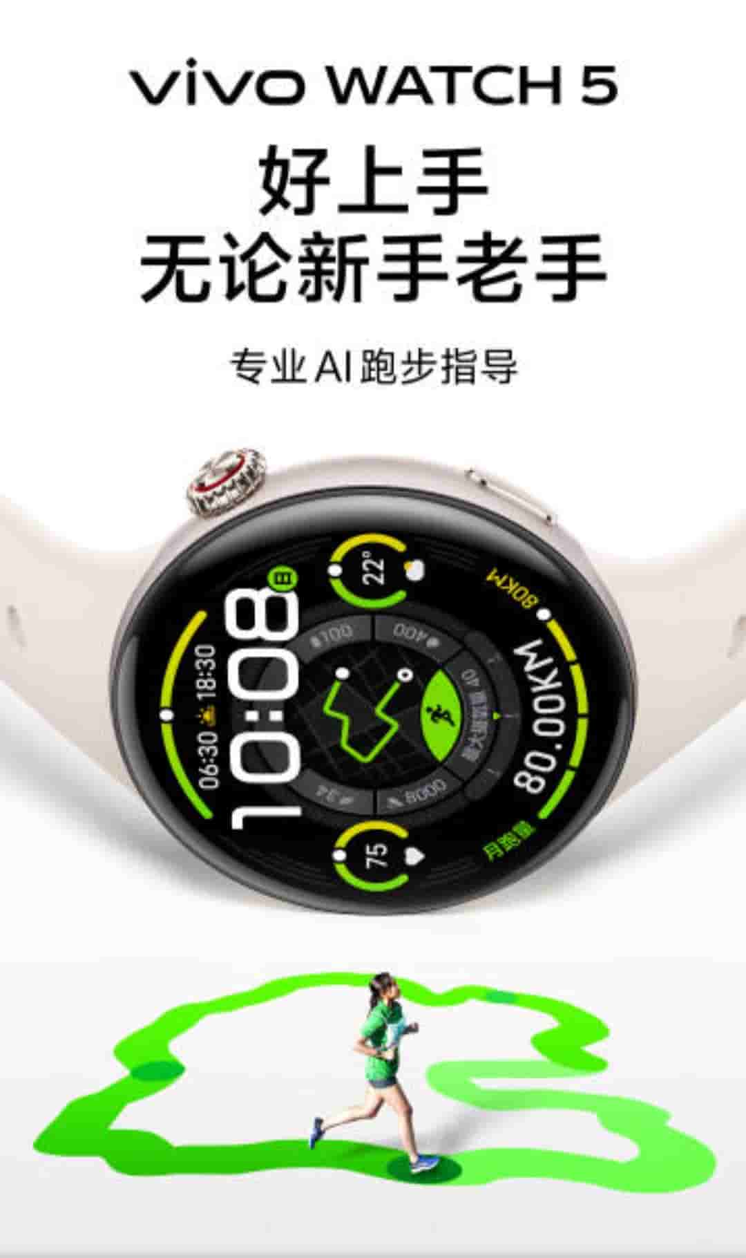 Vivo Watch 5 comes with Professional AI running guidance, making it easy to use for both beginners and veterans. It has various health sensors that monitor cardiovascular health, blood pressure, heart health, and arrhythmia analysis. It offers 22 days of Bluetooth battery life, comes with Blue River OS, and has a Blue Heart Xiao V AI assistant.