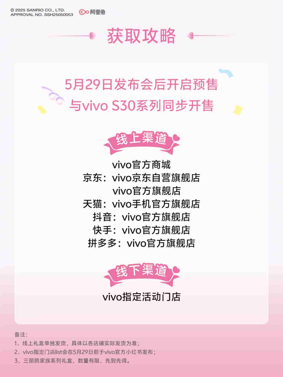 All you need to do is go to Vivo official website/ Jingdong/ Tmall, search for Vivo S30 to participate in the interaction and you will also have a chance to win the Sanrio family series gift box grand prize.
