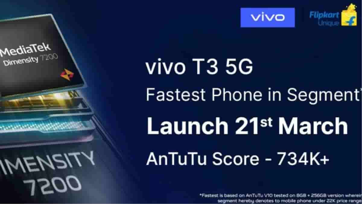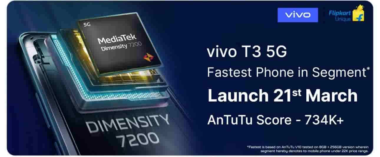 Vivo T3 5G confirmed to be powered with MediaTek Dimensity 7200 SoC; AnTuTu Score and Price Range also revealed
