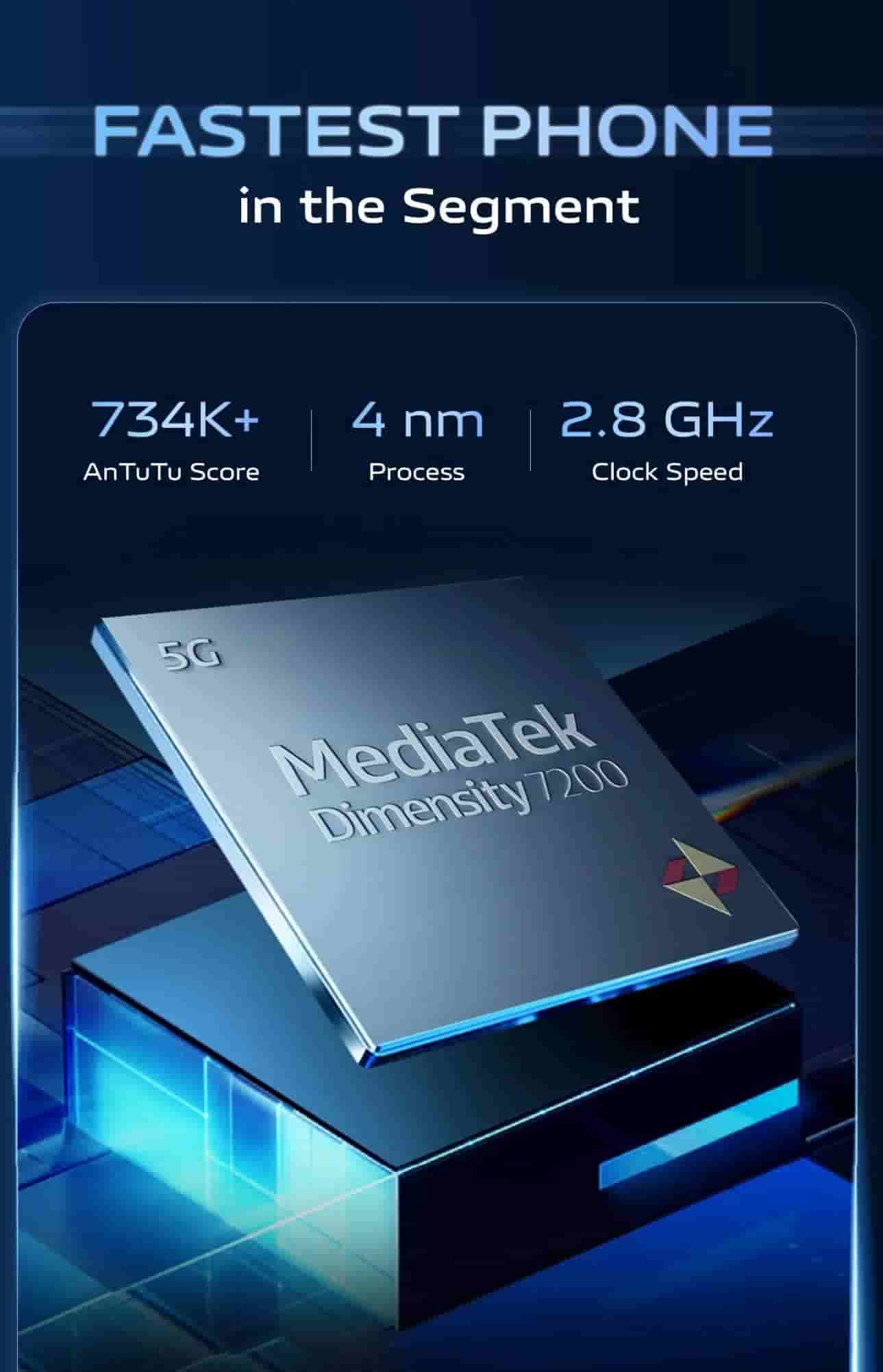 The microsite on Flipkart today officially revealed that the Vivo T3 5G smartphone will be powered by a MediaTek Dimensity 7200 processor.