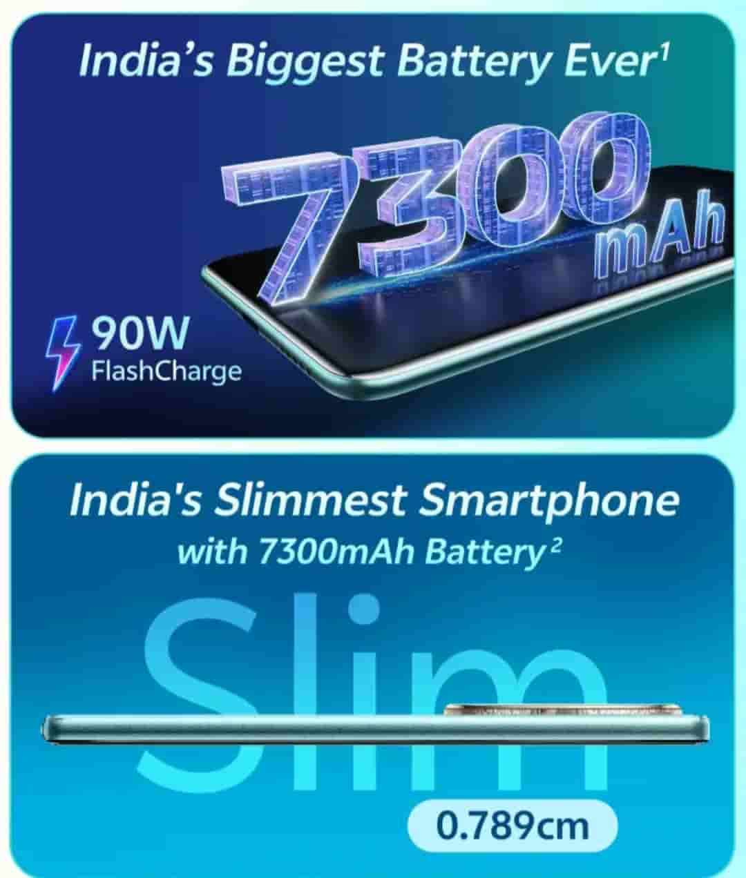 It is backed by a 7300 mAh battery, supports 90W FlashCharge, Reverse charging, and Bypass charging. It features 3rd-generation silicon-carbon anode technology. Other features include- 0.789cm thin, new ultra gaming mode, AI game Voice changer, 4D game vibration, in-display fingerprint sensor, 4k video recording with 30FPS, MIL-STD-810H certified, AI Erase, AI Photo enhance, AI Notes assist, Super Documents, Circle to Search, Bluetooth 5.2, up to 12GB virtual RAM and IP65 rating.