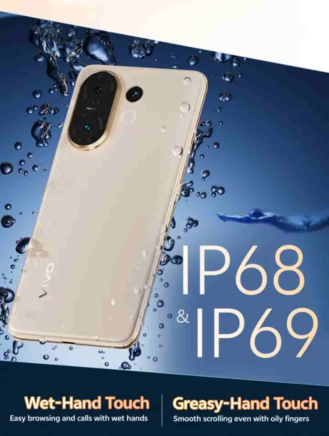 The smartphone will arrive with an IP68 & IP69 rating. With the help of wet hand touch support, users can easily browse and attend calls with wet hands, while with the support of greasy hand touch, they can enjoy smooth scrolling even with oily fingers.