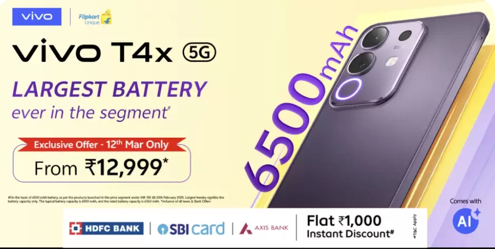 The smartphone comes in Marine Blue and Pronto Purple colors. There are three storage options: 6/128GB priced at Rs 13,999, 8/128GB priced at Rs 14,999, and 8/256GB priced at Rs 16,999. The sale will start on 12th March via vivo.com, Flipkart, and offline stores. Vivo is offeringa Rs 1000 discount with HDFC, SBI, and Axis Bank cards on the first day of sale.