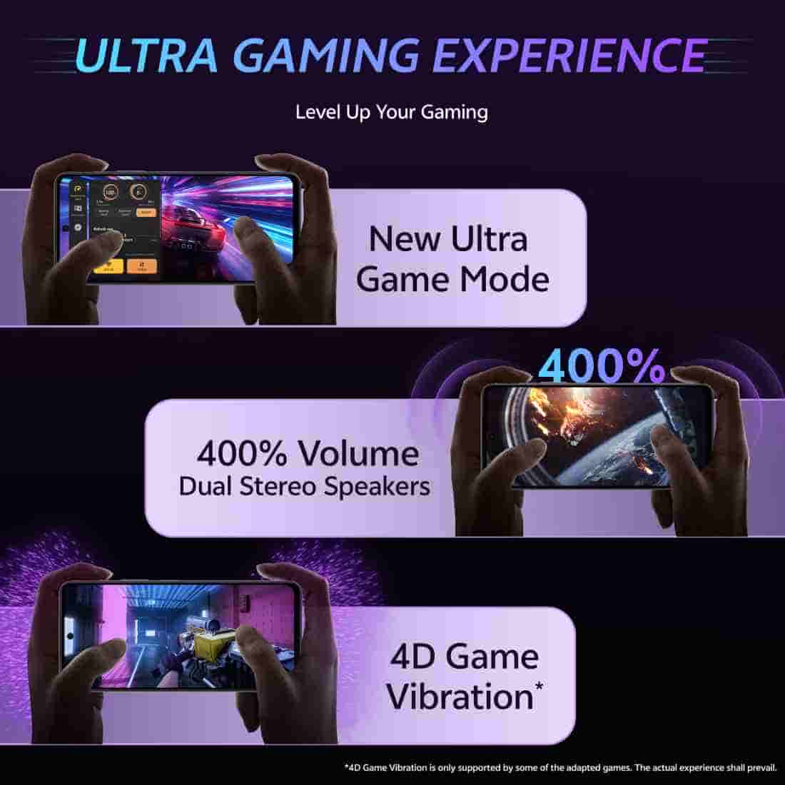 It is backed by a 6500 mAh battery and supports 44W FlashCharge. The smartphone packs up a 50MP main camera and a 2MP secondary camera on the rear side while on the front it features 8MP telephoto camera. Other features include- Ultra game mode, 4D game vibration, dual stereo speakers with 400% volume, Military MIL-STD-810H test passed, Dynamic Light, Bluetooth 5.4, and USB 2.0. WiFi 6, side-mounted fingerprint sensor, 2+3 year update policy, dual Nano SIM and IP64 rating.