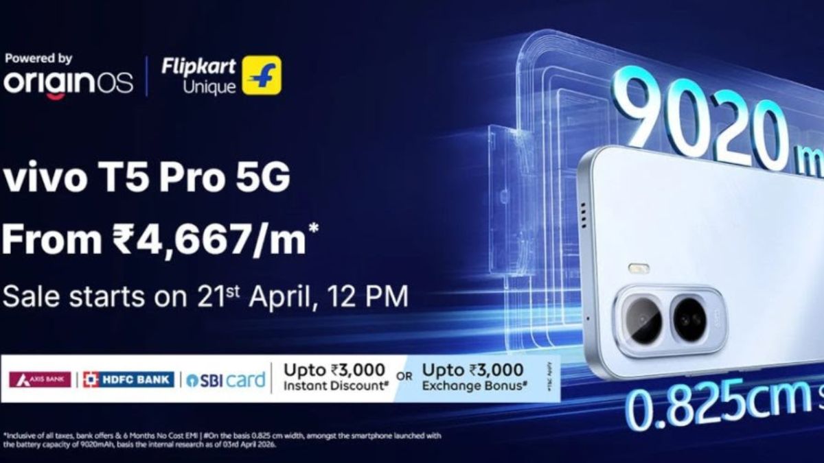 Vivo T5 Pro 5G with 9020 mAh battery and 7000mm2 VC cooling system launched in India