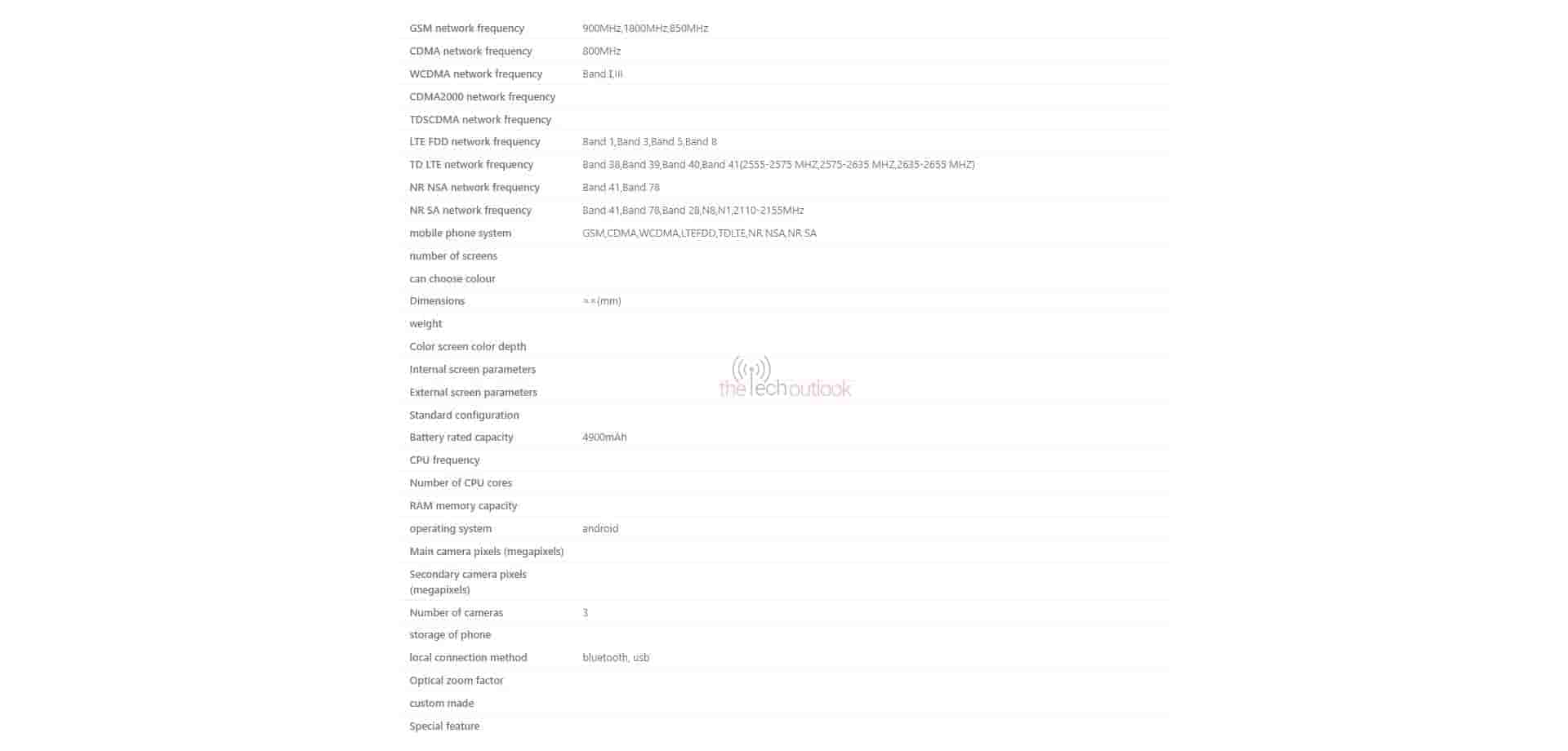 The listing on the TENAA certification website reveals the V2313A smartphone to be a 5G device with 2G, 3G, 4G, and 5G network connectivity support. It will also have Bluetooth and USB local connectivity supports as well. The device will also run on the Android-based operating system and will have a 4900 mAh rated battery.