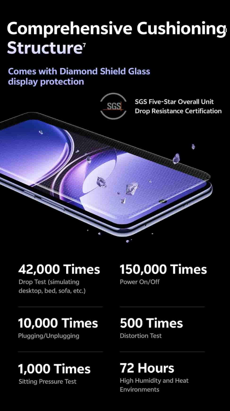 The smartphone arrives with SGS Five-Star Overall Unit Drop Resistance certification and Diamond shieldlass display protection.