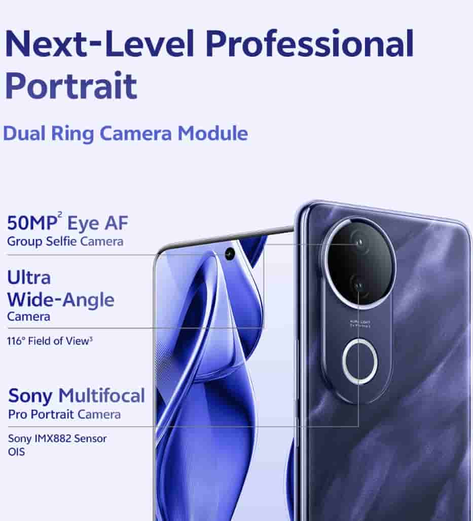 The smartphone will arrive in Sapphire Blue and Pearl White colors. At just 0.73cm slimness, the device will feature an ultra-slim Quad curved display with a 120Hz refresh rate. It features dual dual-ring camera module and Aura Light. On the rear side, it features a Sony IMX882 multifocal Pro Portrait camera with OIS support. With three focal lengths- 26mm (1x), 39mm (1.5x), and 52mm (2x), it offers depth and versatility. Other than this, there is also an Ultra Wide-Angle camera with a 116-degree field of view. On the front, it features a 50MP Eye AF selfie camera.