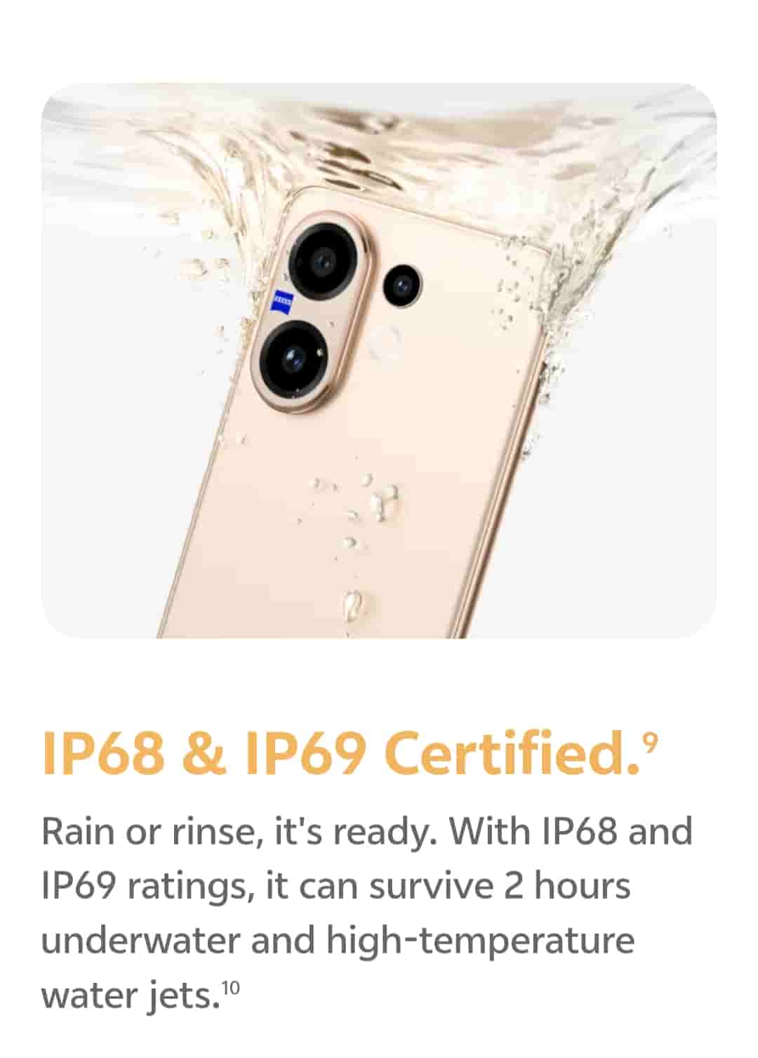 It is powered by the Snapdragon 7 Gen 4 SoC. With up to 12GB+ 12GB Extended RAM, you switch between more than 40 apps and games at high frame rates seamlessly. The device can survive 2 hours underwater and high-temperature water jets with IP68 & IP69 ratings. It will run on Funtouch OS 15. The device is teased to offer a 5-year smooth experience.