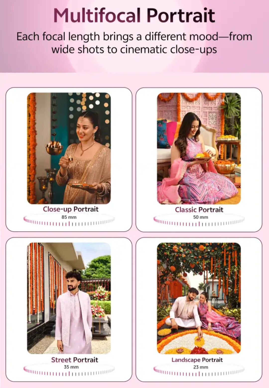 Vivo V60e smartphone is Vivo’s first 200MP main rear camera device in the INR 40K price segment. The device also features an 8MP wide–angle camera on the rear side and a 50MP Eye AF Group selfie camera. It will arrive with a multifocal portrait feature that offers from wide shots to cinematic close-ups. The smartphone will arrive with India’s first AI Festive Portrait and AI Four-Season Portrait.
