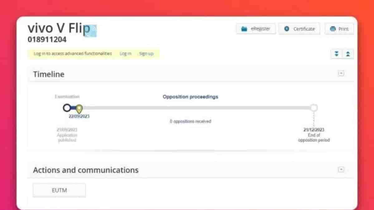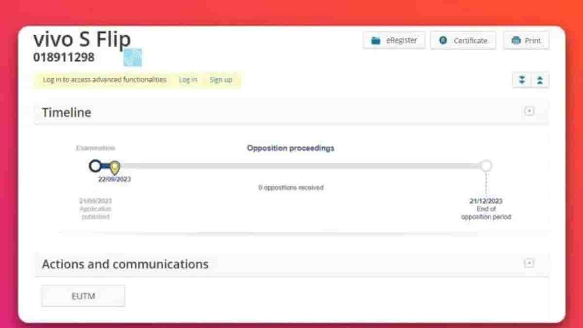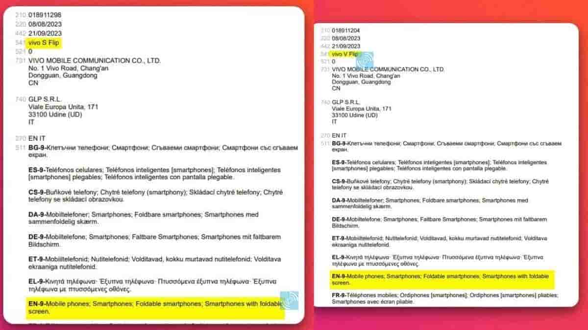 Keeping up with the trend of foldable devices, Vivo has also recently arrived with its first flip phone Vivo X Flip, and second foldable device Vivo X Fold 2 in China. Well, the brand might soon be launching new flip phones in the market. According to a report by Gizmochina, Vivo seems to be currently working on new flip phones named- Vivo S Flip and Vivo V Flip as the brand has filed for the trademark of these two names for a European Union Trademark.