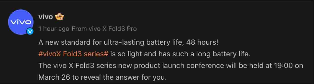Coming to the official update, the brand via its Weibo handle has confirmed that the X Fold 3 series will be light in weight, but at the same time will offer an ultra long battery life of up to 48 hours.