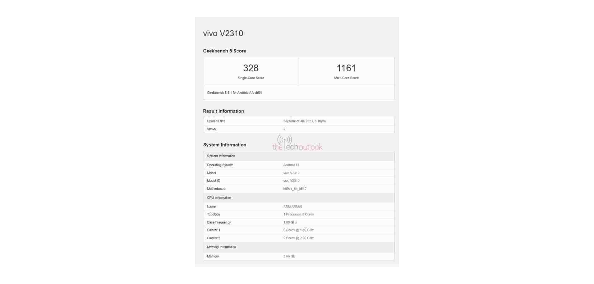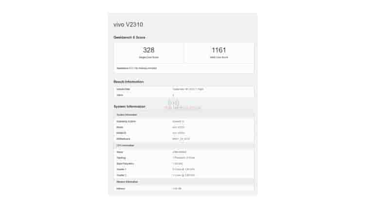 This time The TechOutlook has spotted Vivo Y17s on Geekbench with the model number V2310. In the Geekbench test, this handset has managed to score 328 in the single-core test and 1161 in the multi-core test. The listing reveals that it will be powered by an octa-core Unisoc Tiger T700 processor paired with the Mali G52 MC2 GPU. Furthermore, the listing also revealed that it will pack 4 GB RAM(3.66GB mentioned) and will run Android 13 out of the box.