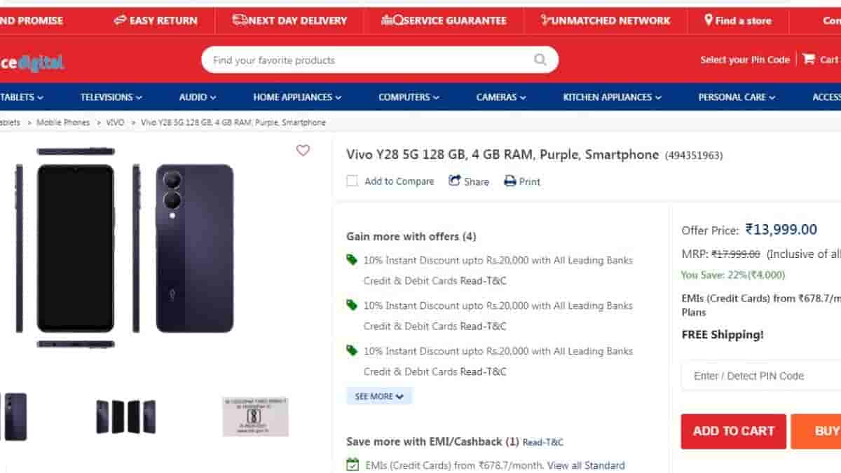 The device listed is similar to the one revealed on Google Play Console in terms of design. The listing reveals that the smartphone features a 6.56-inch display. It features a dual rear camera setup of 50MP+2MP and an 8MP front camera. It is backed by a 5000 mAh battery. It offers 4GB RAM and 128GB internal storage. However, the listing reveals that the device is powered by Dimensity 6020 SoC which differs from what has been revealed through the Google Play Console website. It is suspected that the wrong name of the processor has been listed on the Reliance Digital website or probably it is going to be Dimesity 6020. But its wise to wait for the official confirmation from the brand about it. As per the listing, this smartphone has been priced at Rs. 13,999.