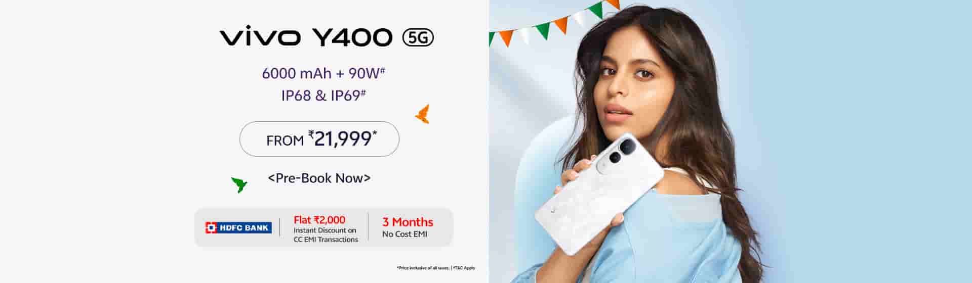 The Vivo Y400 5G is priced at ₹21,999 for the 8GB + 128GB variant, while the 8GB + 256GB variant is listed at ₹23,999. Further, Vivo is offering an instant discount on Credit Card EMI transactions of up to ₹2,000 with HDFC Bank. Vivo is also offering a ₹500 student discount, a ₹500 review voucher, and a complimentary 1-year extended warranty.