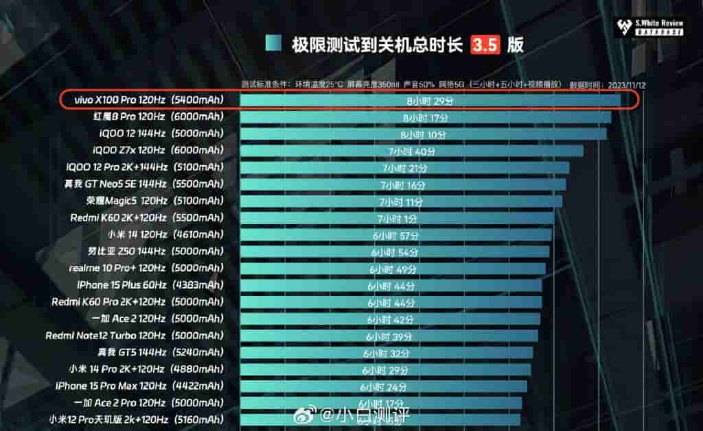Vivo’s upcoming flagship device, the Vivo X100 Pro smartphone, has now been listed on the Xiaobai evaluation database, and it has been revealed that this soon-to-be-launched smartphone from Vivo will be having a total battery backup of 5400 mAh and will deliver a total usage time of 8 hours and 29 minutes to its users.
