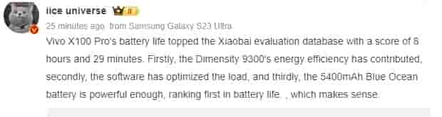 It has also been pointed out (by the tipster Ice Universe) that the smartphone was able to top the list with this tremendous battery life because of the power efficiency that the Dimensity 9300 processor has, the optimized user interface of the device, and also because of the 5400 mAh battery backed within it.