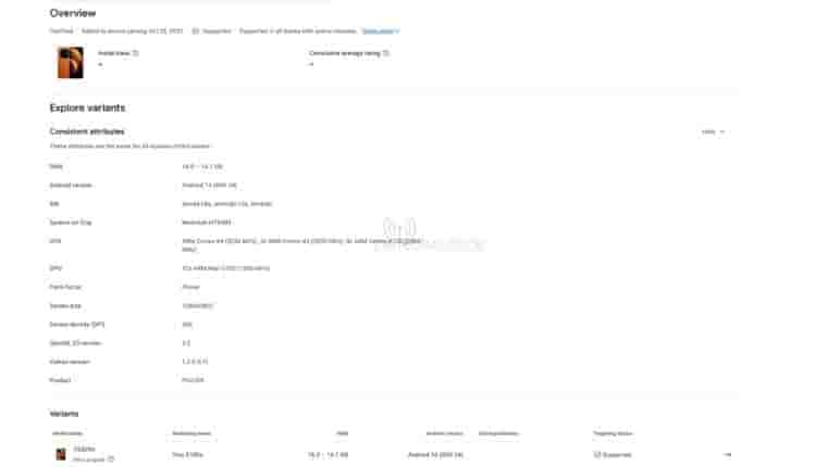 The processor consists of an ARM Cortex X4 primary core(3.25 GHz), three ARM Cortex X4 performance cores(2.85 GHz), and four ARM Cortex A720 efficiency cores(2.00 GHz). The chipset will also be integrated with the ARM Mali G720 GPU (1.30 GHz) as well. These details reveal that the chipset will be MediaTek’s Dimensity 9300 processor. Its display panel also supports a resolution of 1260 x 2800 pixels and a screen density of 560 DPI.