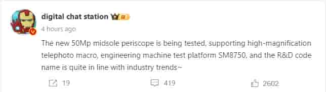 Xiaomi is reportedly working on its next flagship series Xiaomi 15 that can be launched later this year in the market as per the various leaks and reports. This series is expected to be the first to come with the Snapdragon 8 Gen 4 chipset followed by OnePlus and iQOO. Now a new update has come about this series from known tipster DCS who wrote on Weibo that a new 50MP periscope camera is under test for the Xiaomi 15 series. He also mentions the high-magnification telephoto lens for the series.