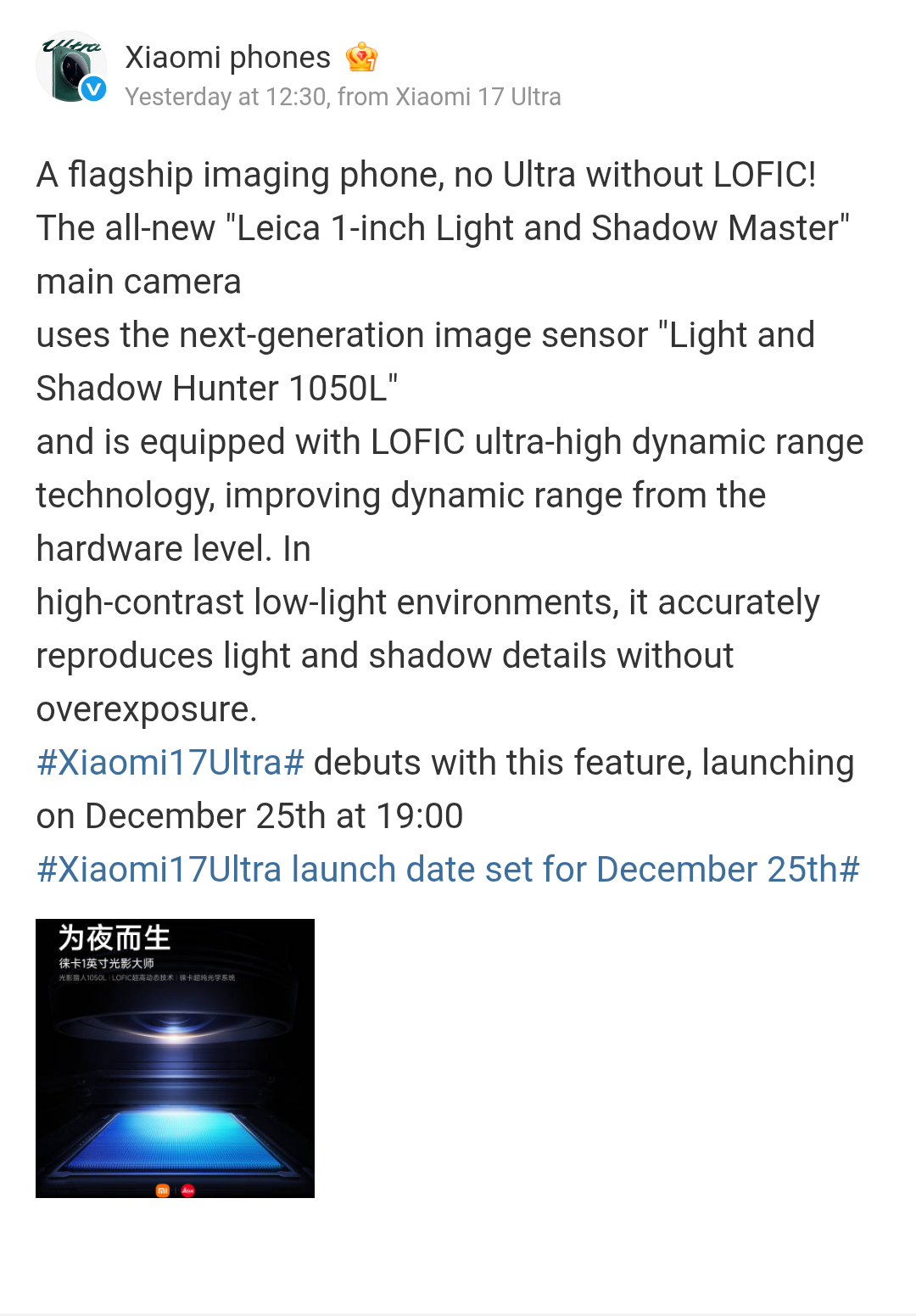 Xiaomi 17 Ultra – Debuting in China on 25th December 2025