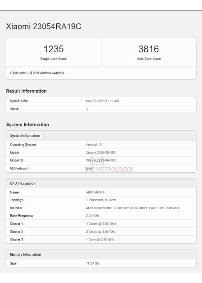 Just a few days back, we informed you that a mysterious Xiaomi 23054RA19C was registered on MIIT certification which revealed that the upcoming device will support 5G network connectivity. Now we have spotted the smartphone on Geekbench listing with the same model number.