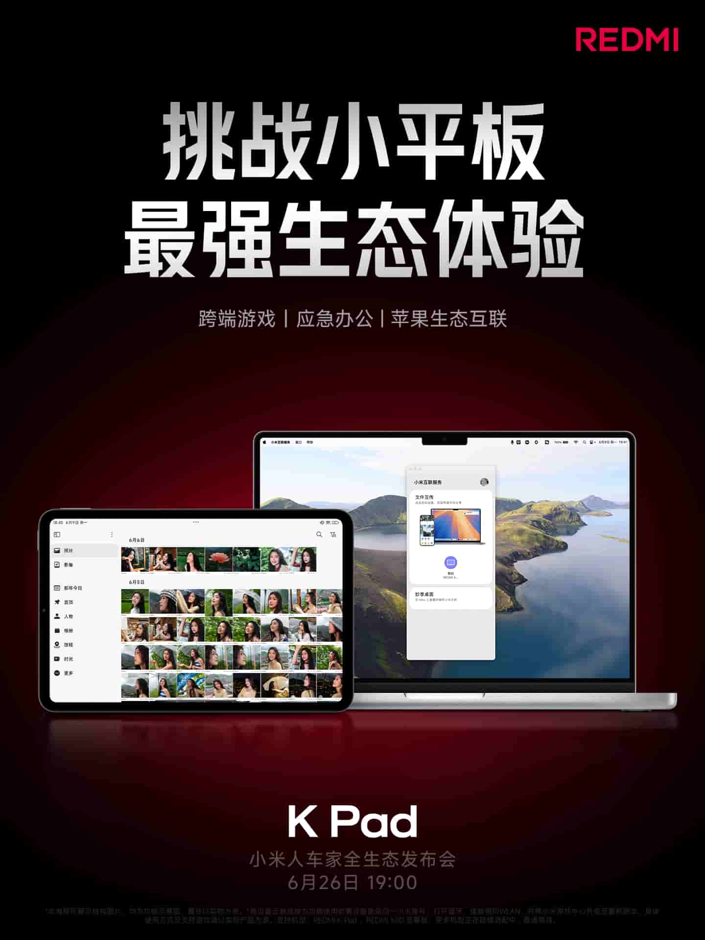 For the Redmi K Pad, the new teasers confirm specs like the Three-Antenna Concurrent Architecture along with the Innovative Gamma Antenna Ray – claiming it to support the strongest game latency on a compact tablet. Furthermore, cross-platform games, emergency office, and Apple ecological interconnection are also teased for this device,