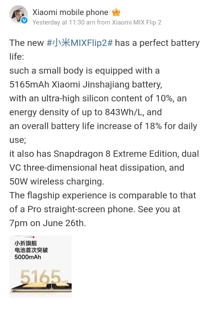 Xiaomi Mix Flip 2 – Teased Performance, Charging, and Productivity Features