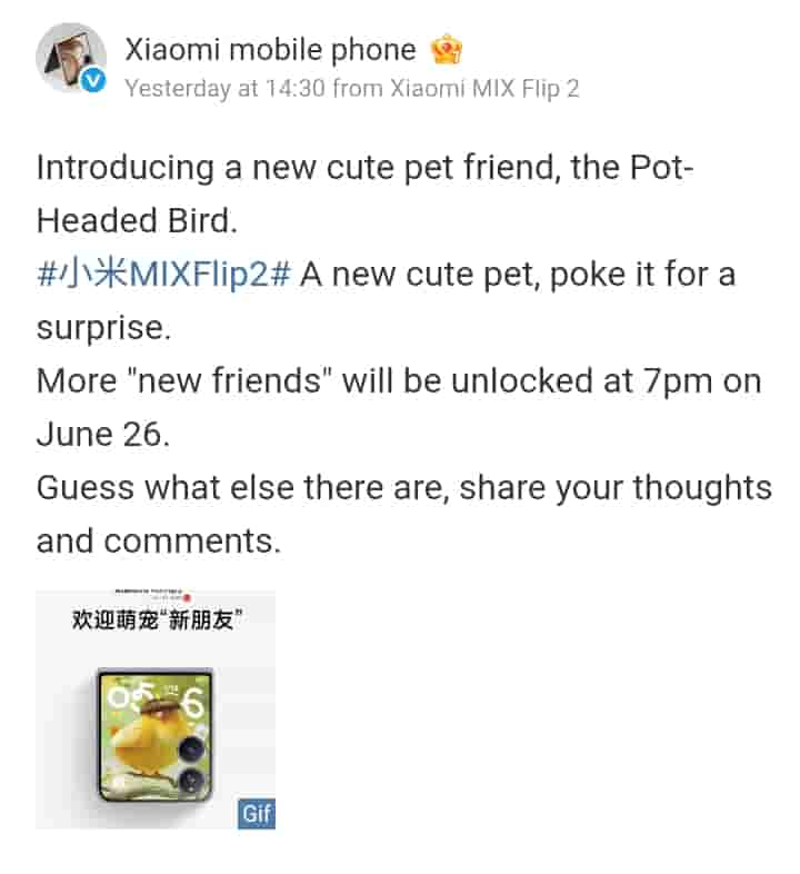 A new cute friend – the Pot-Headed Bird has also been introduced on the Xiaomi Mix Flip 2 smartphone, and users can poke it to have fun and interact with it.