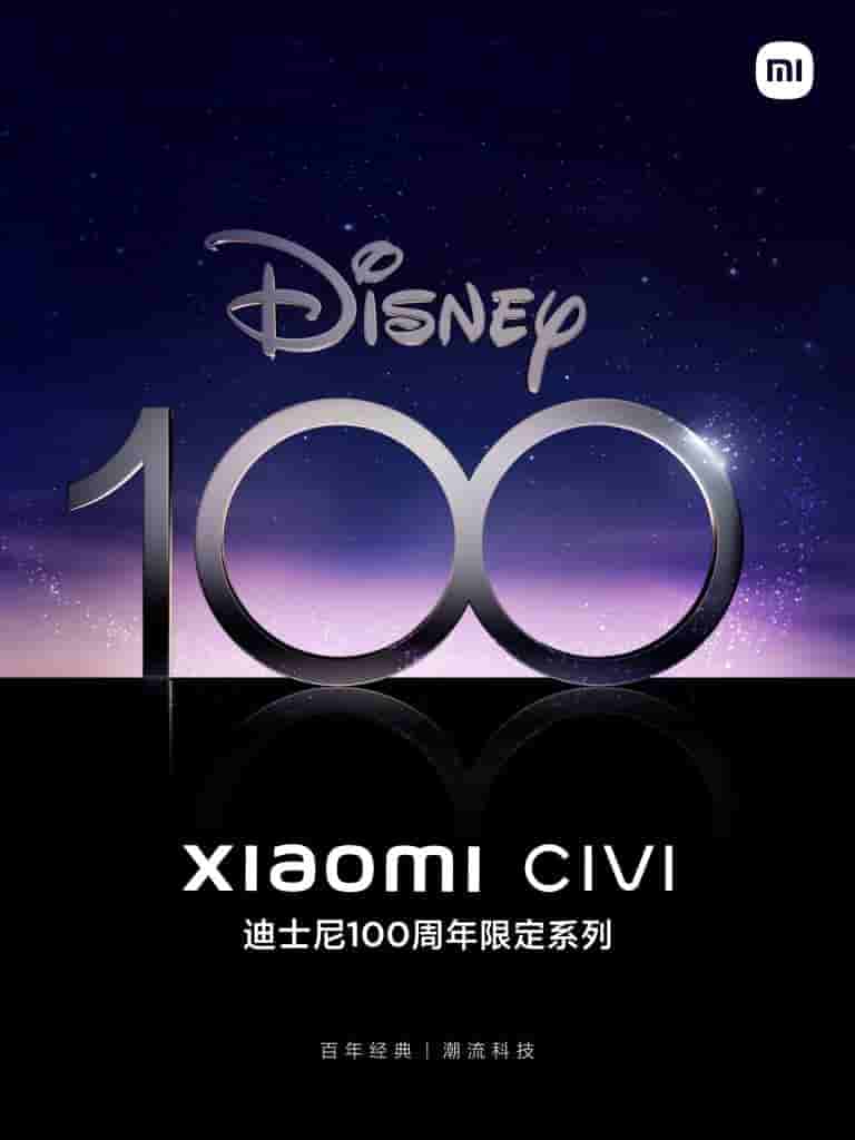 Several reports have claimed that Xiaomi will announce a new Civi-branded phone this month in China. Today, the company released the first official teaser for the phone. As can be seen in the poster below, Xiaomi will be celebrating the 100th anniversary of Disney with the release of the next Civi phone.
