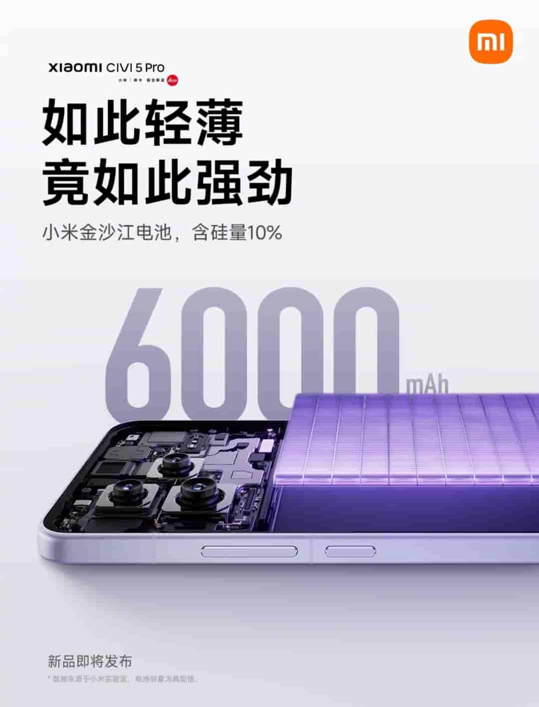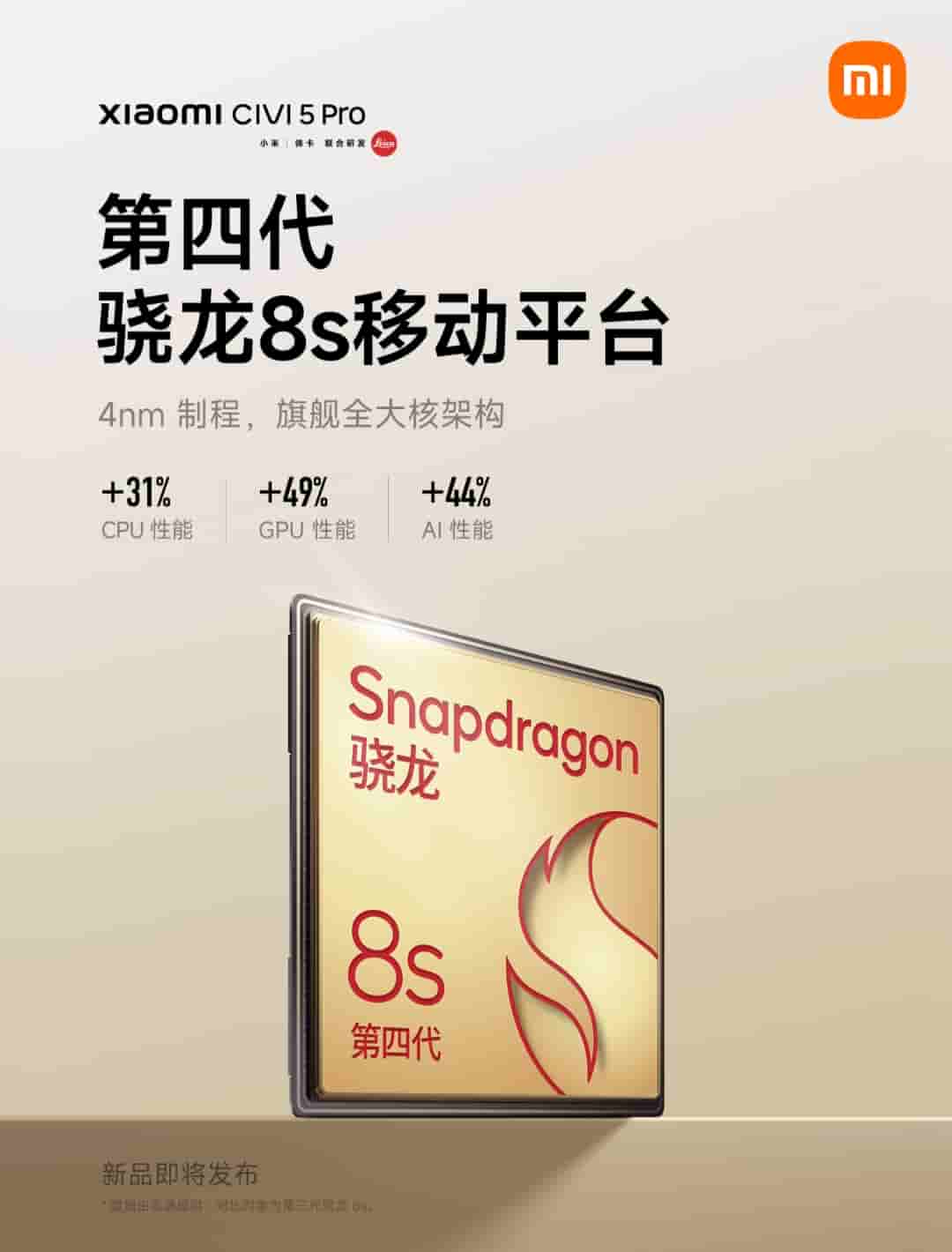 Xiaomi Civi 5 Pro confirmed to feature Snapdragon 8s Gen 4 SoC and 6000 mAh battery